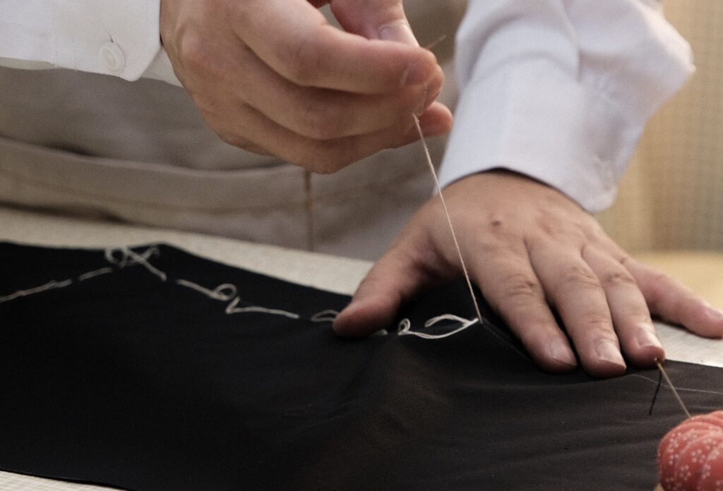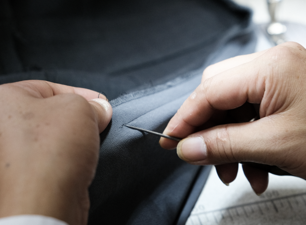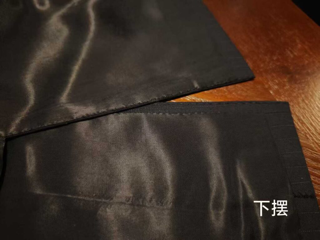 12.裤子斜兜和门襟手工拱针及套结,裤腰里用棉兜本